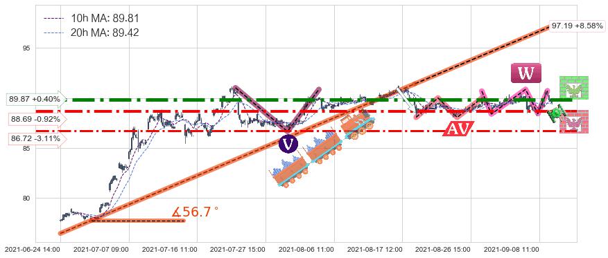 ♘ 阻力价格位89.87,可信任强度93.40%,距离最后交易2021-09-09 14:00形成的收盘价格89.51相差 +0.40%
