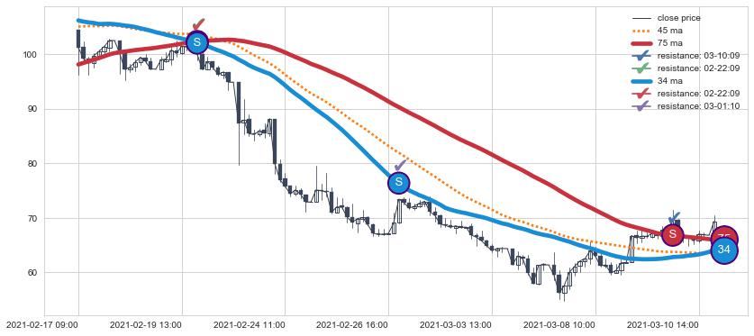 📝 多条均线形成死叉后走势最低价格达到: 68.26