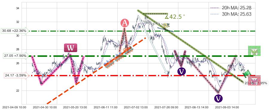 ➢ 【仅预测突破】最后价格:25.07与预测突破价格:26.88→【空间中等】后续最小【反转】第一目标价格→(10-06:11: 32.03 )