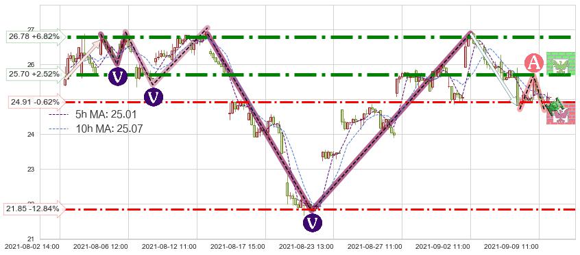 ♘ 阻力价格位25.70,可信任强度88.36%,距离最后交易2021-09-09 15:00形成的收盘价格25.07相差 +2.52%