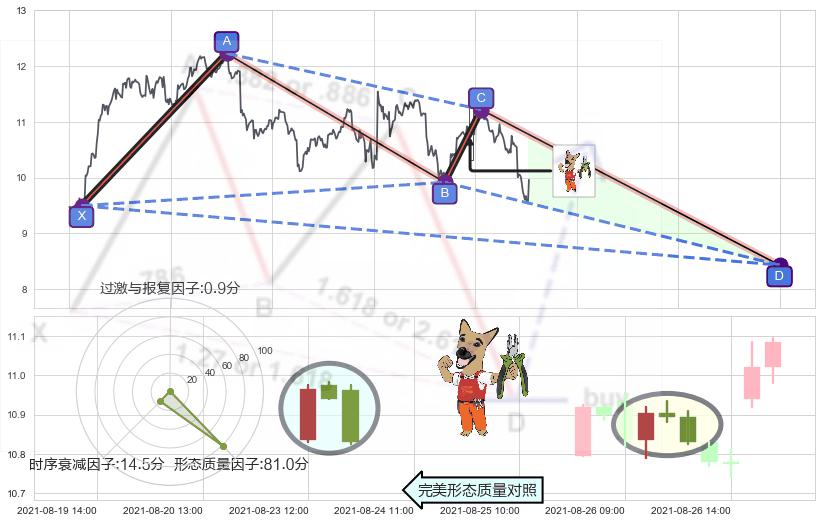 ➢ 🕰 价格走势在2021-08-26 10:00:00至2021-08-26 12:00:00期间形成下跌镊子线(n形磁铁),残存影响值:-0.70