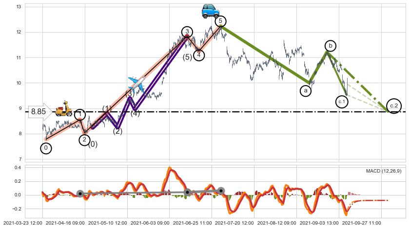➣ c.1: 当前c浪回调位置(09-09:13, 9.54),仍然有回调空间