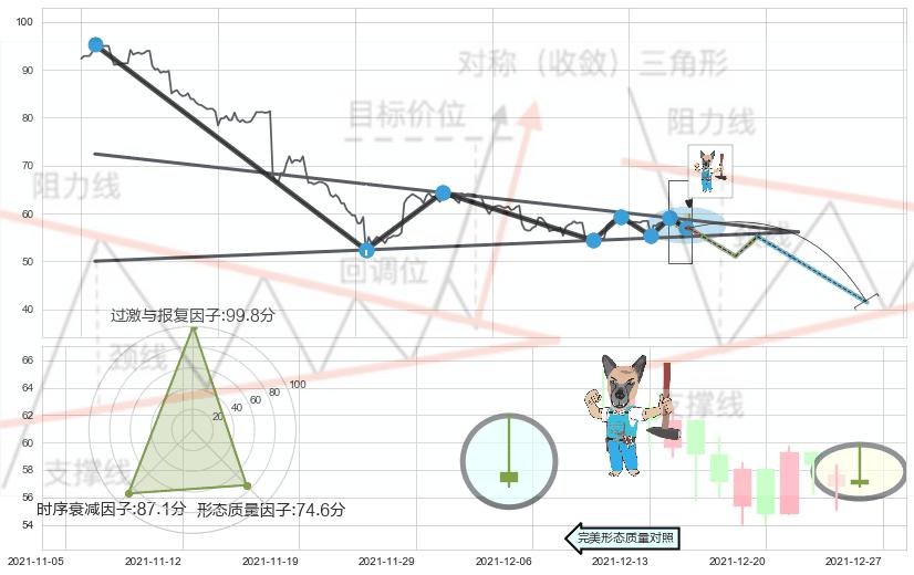 ➢ 下降【对称】三角形整理综合量化分数: 43.22 【偏空】