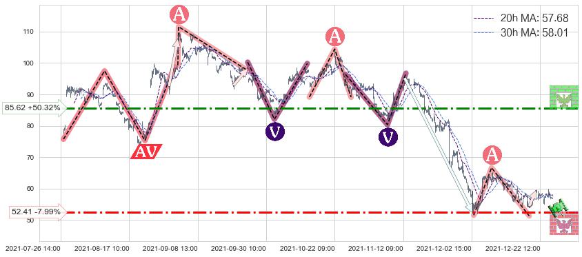♘ 阻力价格位85.62,可信任强度68.55%,距离最后交易2021-12-27 16:00形成的收盘价格56.96相差 +50.32%