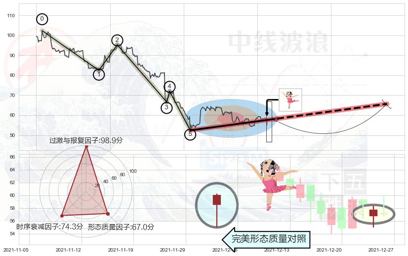 从2021-11-12 11:00至2021-12-03 15:00,共包含106个小时,阶段股价下跌-52.58%,阶段股价变动位移路程比: 1 : 2,下跌趋势角度: 56.0