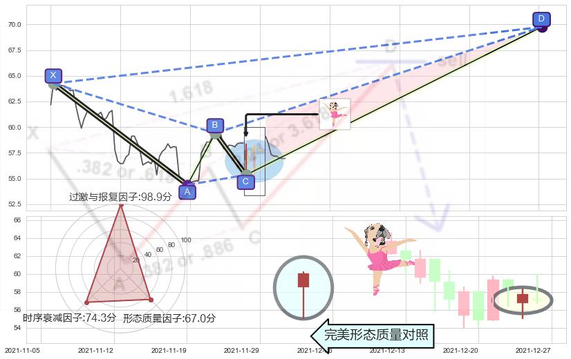 ➣ D点拟合预测价格69.75,距离最后交易收盘价格56.96相差 +22.45%