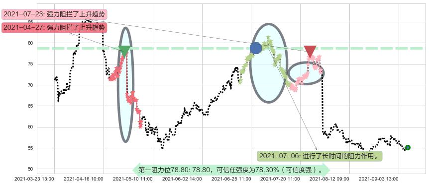 2021-07-23: 第一阻力位78.80强力阻拦了上升趋势,成功阻止了价格的继续上涨。