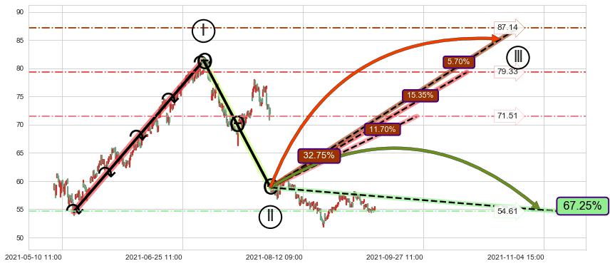 ➢ 大趋势走坏(跌破5浪起点位置)概率67.25%