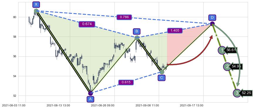 ➣ D点拟合预测价格59.31,距离最后交易收盘价格55.16相差 +7.51%