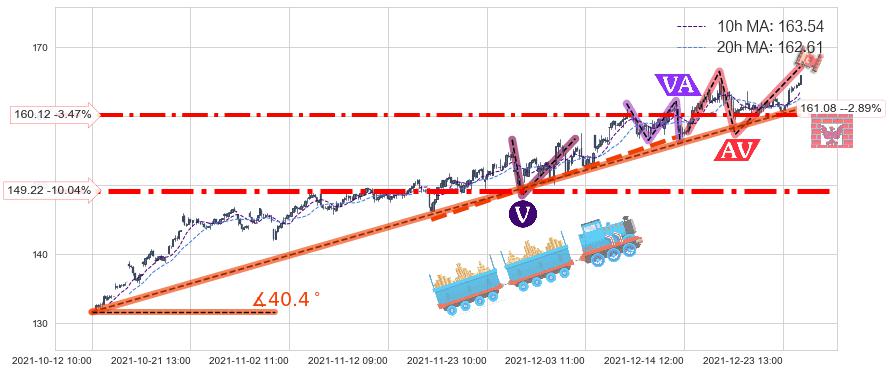 ♘ 支撑价格位160.12,可信任强度84.38%,距离最后交易2021-12-27 15:00形成的收盘价格165.88相差 -3.47%