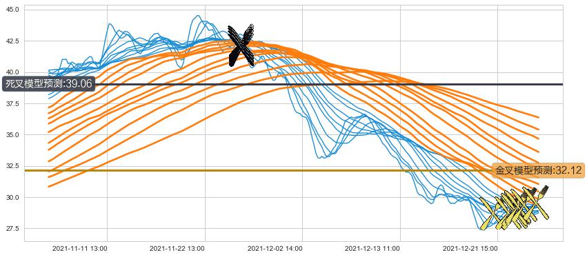 ➣ 120小时均线于(11-24 15:00: 41.72)形成【死叉】基于【死叉历史模型】预测死叉后最低波谷价格: 38.91, 死叉后最低价格27.22,已经下跌超出预测最低波谷价格, 预期反弹