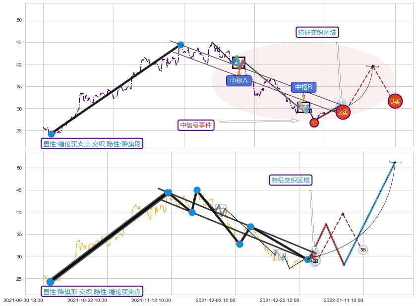➣ 缠论买卖点:下降缠:猜想2买趋势延续,蓄力上涨至3买(大周期趋势均值回复中的小周期趋势跟踪)