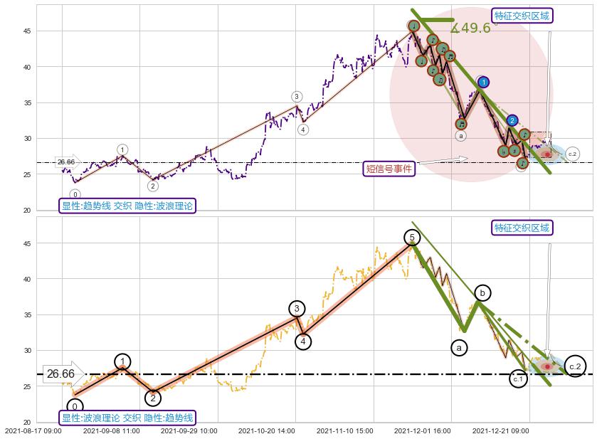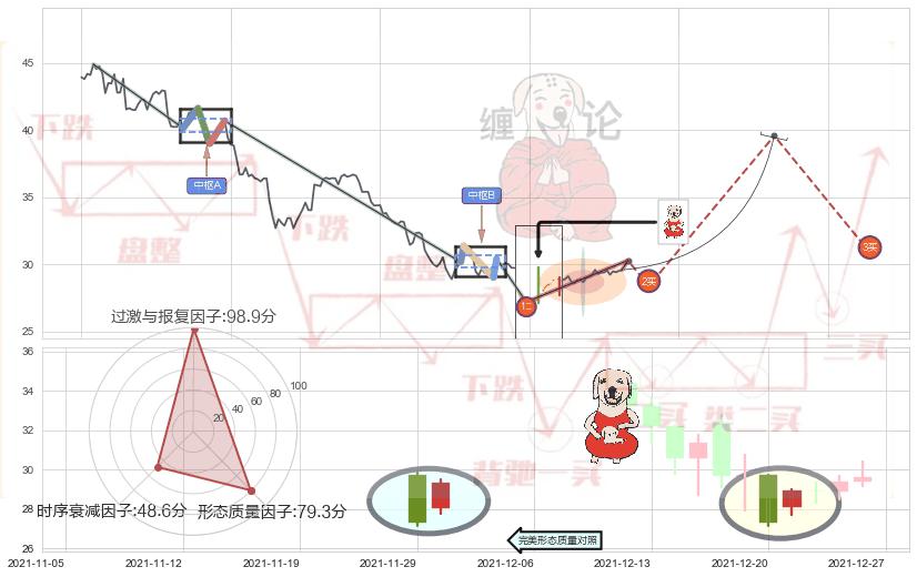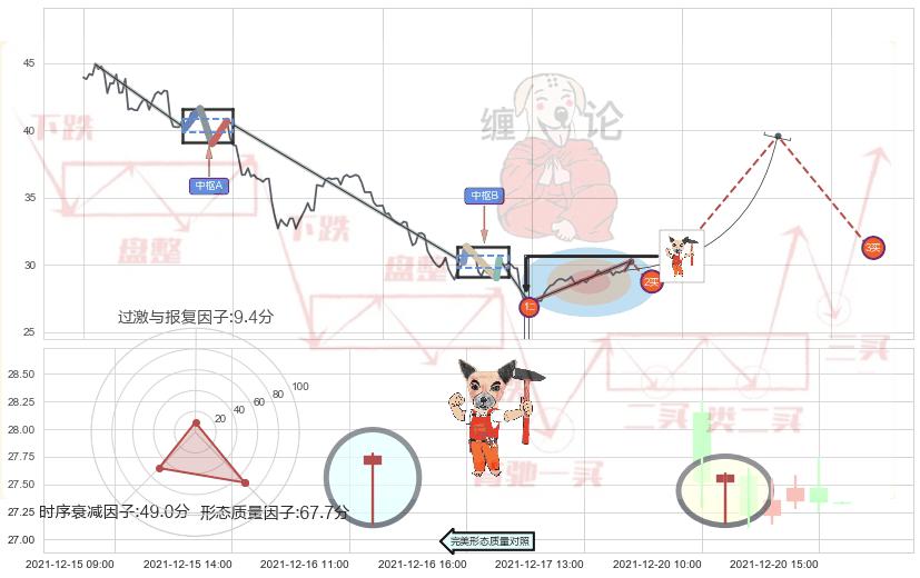 从2021-12-17 10:00至2021-12-27 15:00,共包含43个小时,阶段股价下跌-2.48%,阶段股价变动位移路程比: 1 : 13