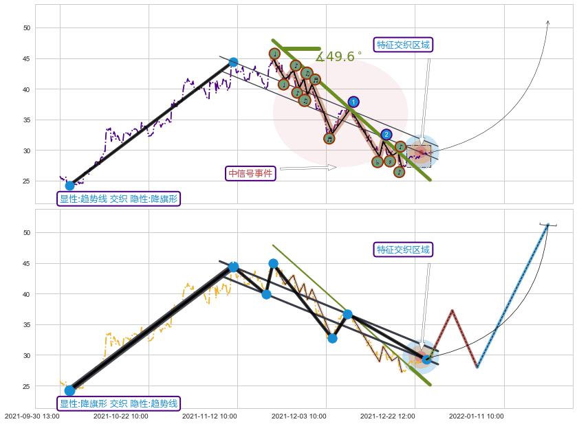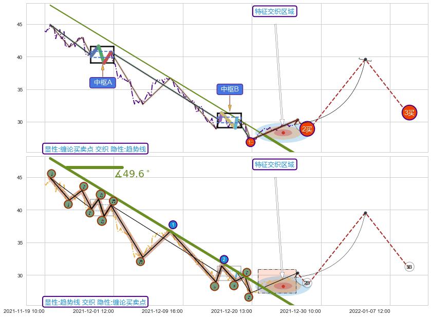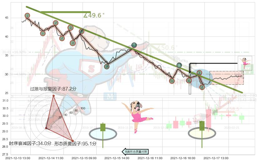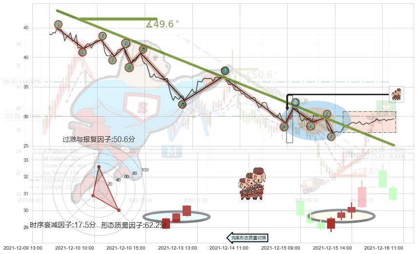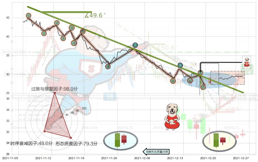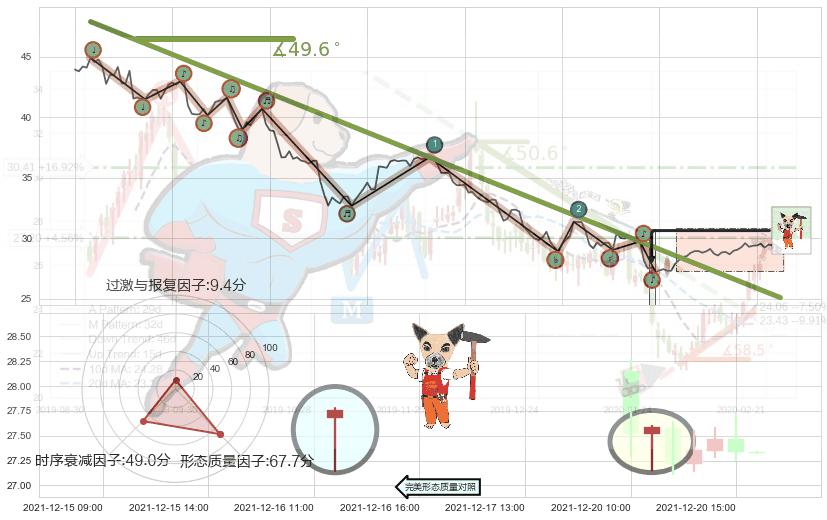 从2021-11-19 14:00至2021-12-21 14:00,共包含156个小时,阶段股价下跌-41.66%,阶段股价变动位移路程比: 1 : 4,下跌趋势角度: 49.6
