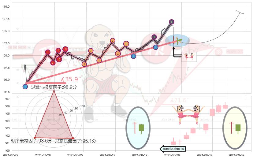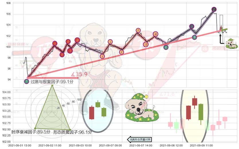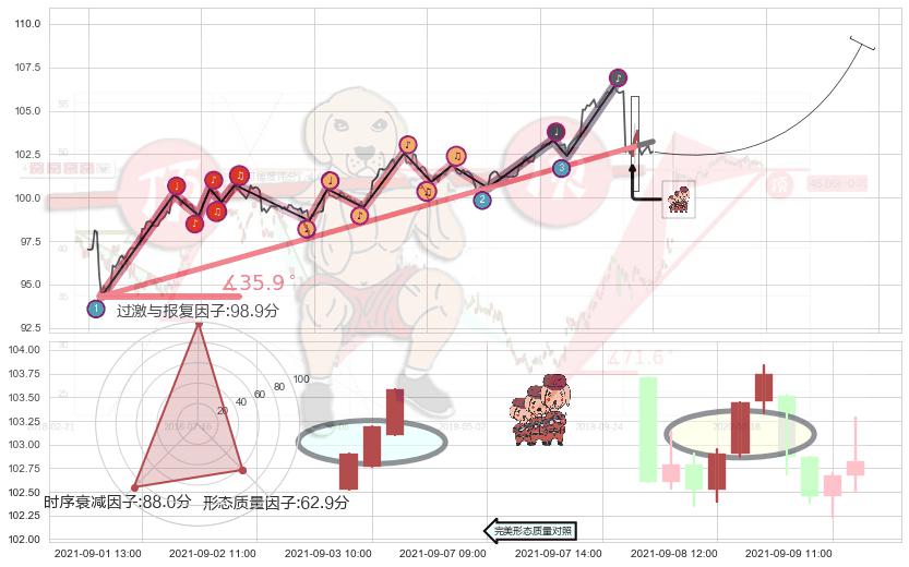 🍖 长线趋势跟踪组合短线均值回复[强支撑信号]2021-07-20 10:00-2021-09-09 09:00上升趋势依然成立(上涨趋势跟踪依然可行),短线价格略微下行回调(均值回复猜想),即将接近趋势提供的未破位的支撑价格:103.23。