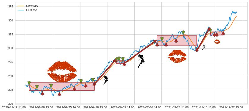 11-18 14:00至03-23 11:00 慢线与快线多次接触,存在上下穿越,有缠绕