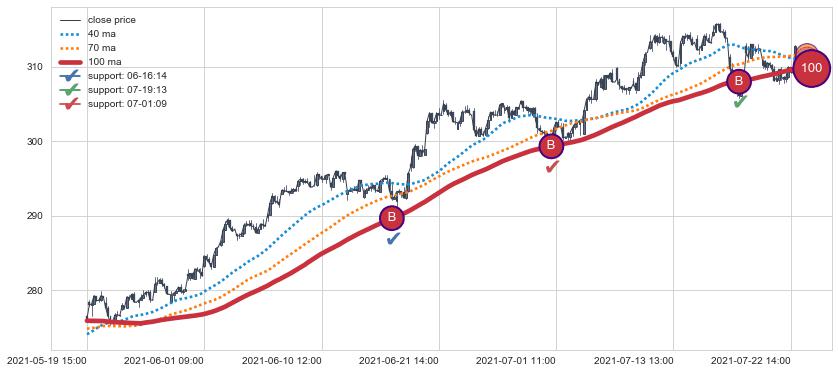 ➢ 最优均线组合共正确确认支撑阻力信号12处,正确确认率 75.00%