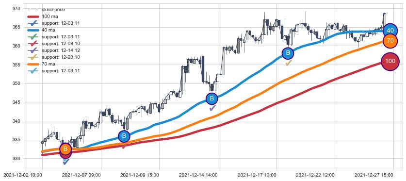 ➣ 70小时均线于(12-03 11:00: 332.44)形成【金叉】基于【金叉历史模型】预测金叉后最高波峰价格: 340.12, 金叉后最高价格368.75,已经上涨超出预测最高波峰价格, 预期回调