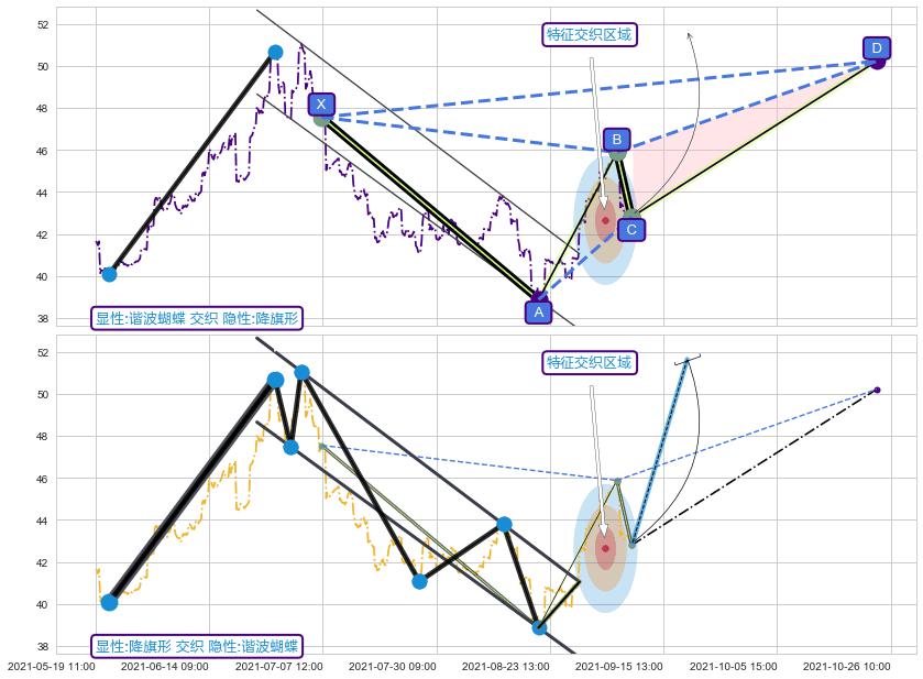 ➢ 谐波蝴蝶与降旗形信号事件周期长度级别相同,同周期信号事件