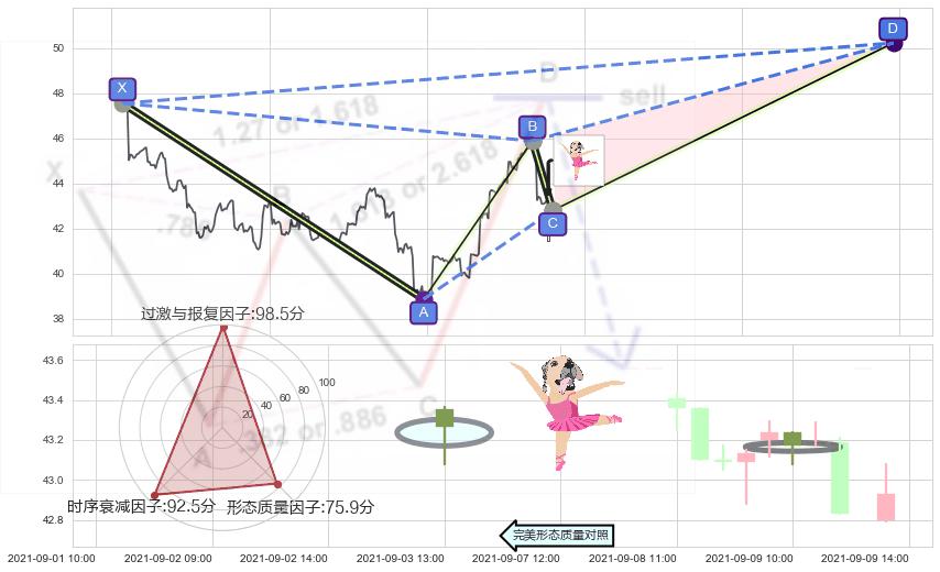 ➣ BC回撤位置在AB的43.9%,符合形态要求