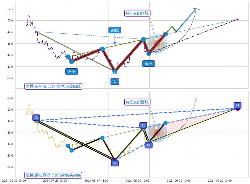 ➢ 头肩底与谐波蝴蝶信号事件周期长度级别相同,同周期信号事件