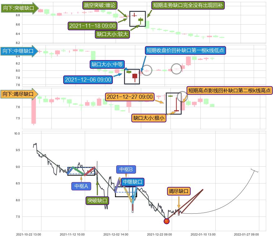 ➢ 2021-12-27 09:00形成:向下跳空【竭尽】缺口