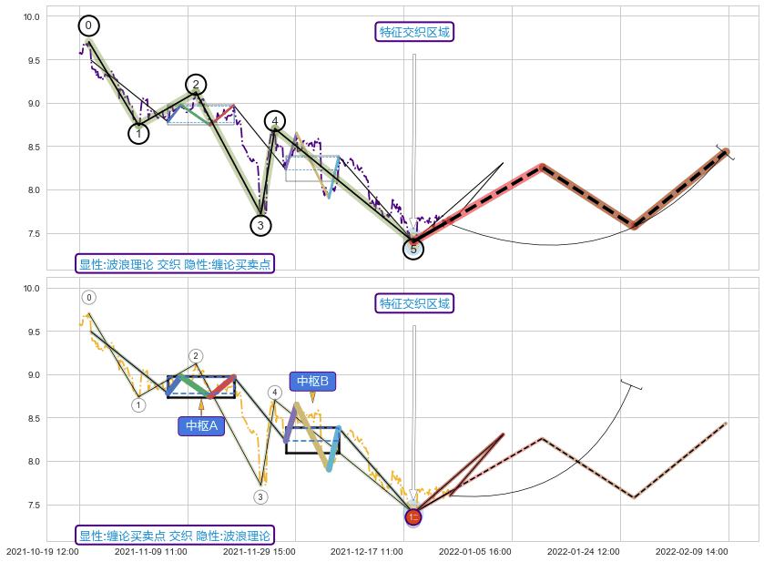 ➣ 缠论买卖点:下降缠中枢AB形成后猜想拐点1买已到达,猜想后续持续拉升(均值回复)