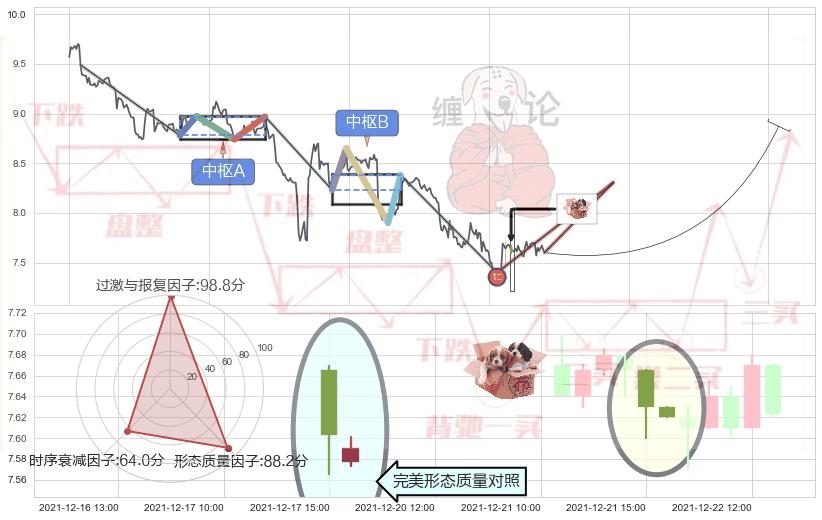 ➣ 中流砥柱形态 + 缠论买卖点下降缠:1买反弹拐点信号叠加后【信号初始稳固度】极低,【看多】信号叠加【可信度影响极小】
