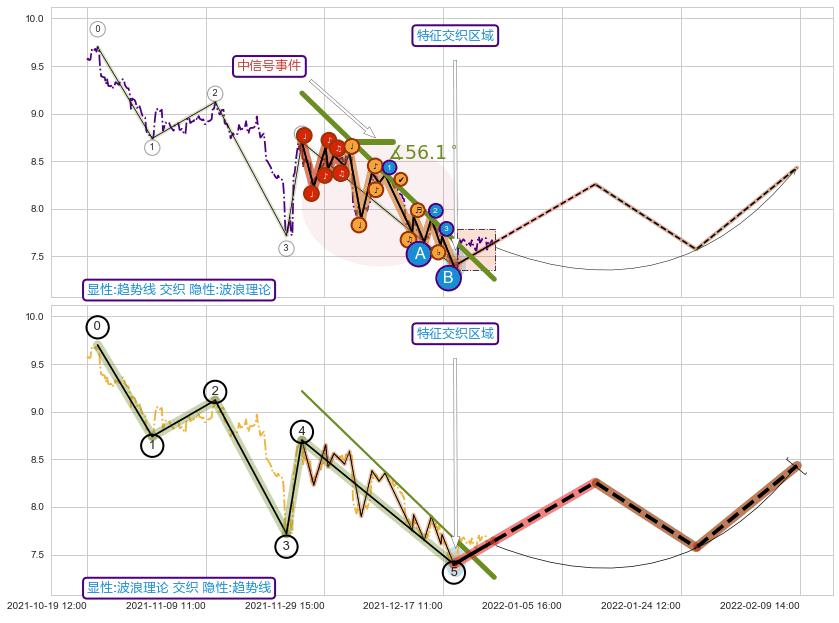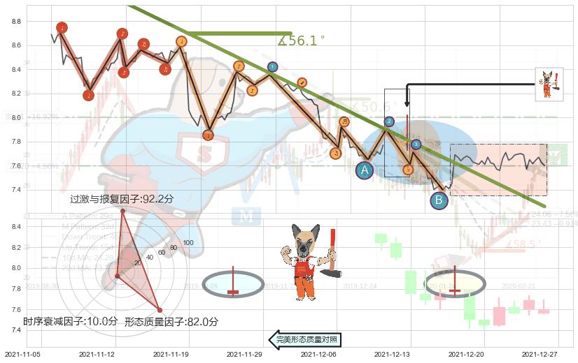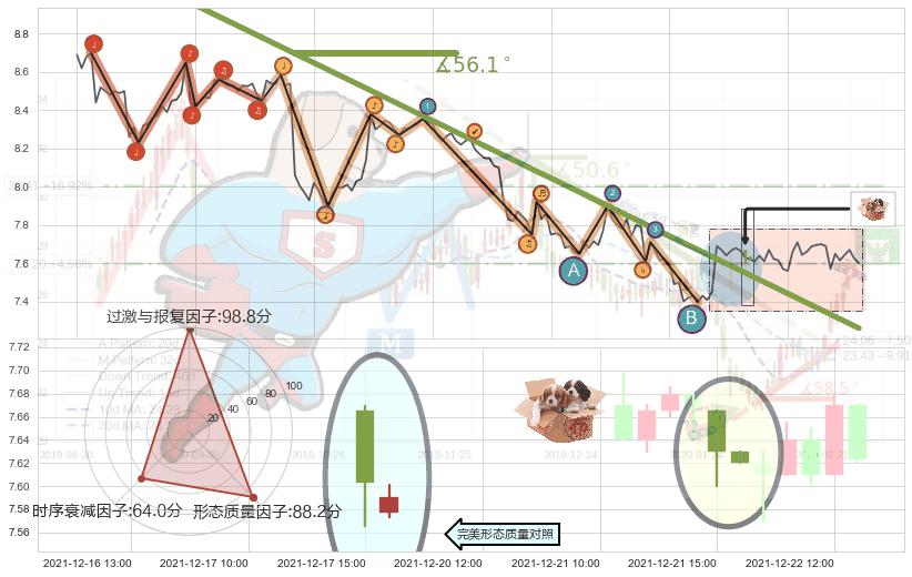 ➢ 2021-11-23 16:00-2021-12-20 15:00下跌趋势存在反转上涨[机会],其原下跌趋势的阻力位(7.26)已被突破[强支撑信号],原下跌趋势角度: 56.1˚