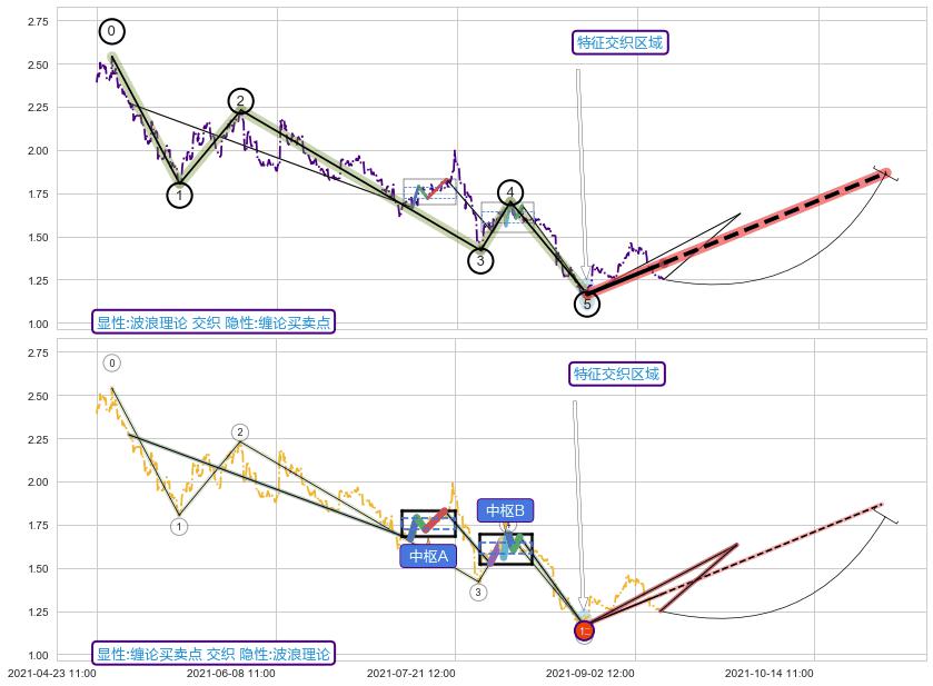 ➣ 缠论买卖点:下降缠中枢AB形成后猜想拐点1买已到达,猜想后续持续拉升(均值回复)