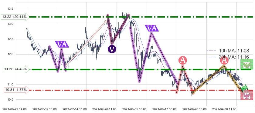 ♘ 阻力价格位13.22,可信任强度74.10%,距离最后交易2021-09-09 14:00形成的收盘价格11.01相差 +20.11%
