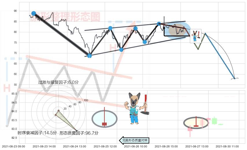 ➢ 🕰 价格走势在2021-08-27 11:00:00至2021-08-27 11:00:00期间形成看跌(高位倒锤头)流星线,残存影响值:-2.39