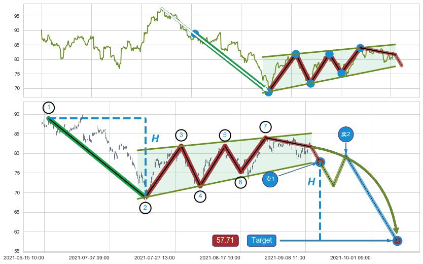 ➣ 最小中继整理跌幅→𝐇: 20.10 (𝐇旗杆的长度:旗杆起点→顶点)