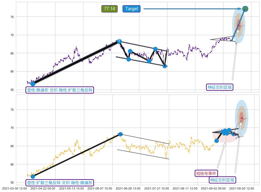 ➢ 扩散三角反转属【短级别信号事件】降旗形属【长级别信号事件】长短周期组合信号事件, 短长事件长度比13.54%