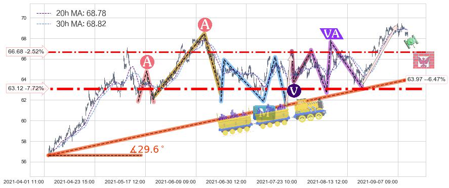 ♘ 支撑价格位66.68,可信任强度68.00%,距离最后交易2021-09-09 14:00形成的收盘价格68.40相差 -2.52%
