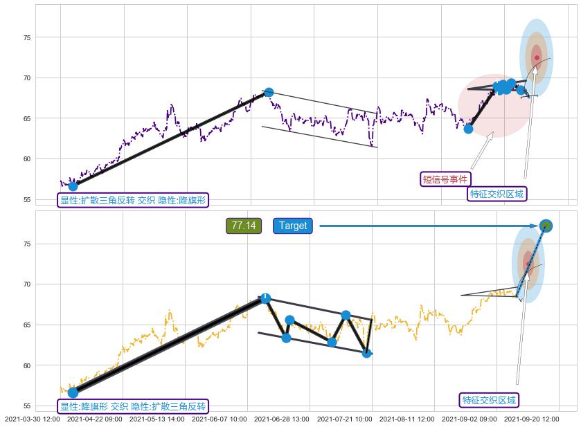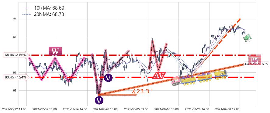 ➢ 【仅预测突破】最后价格:68.40与预测突破价格:69.03→【空间较大】后续最小【整理】第一目标价格→(09-21:10: 72.72 )