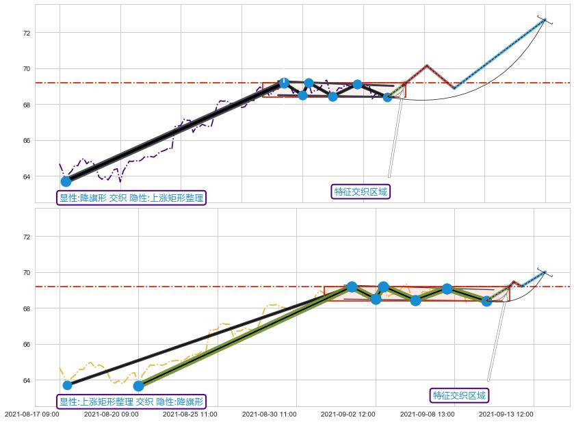 ➢ 降旗形与上涨矩形整理信号事件周期长度级别相同,同周期信号事件