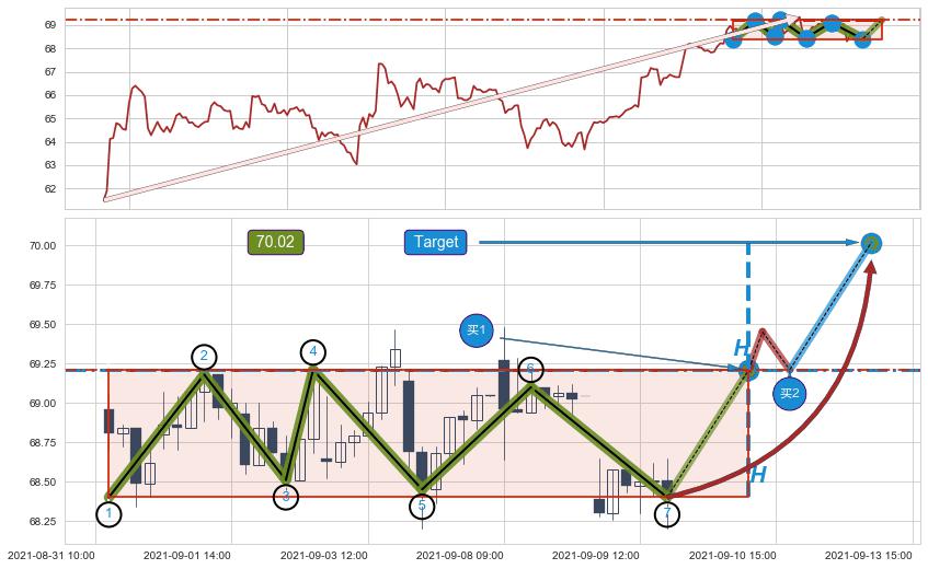 ➢ 【仅预测突破】最后价格:68.40与预测突破价格:69.21→【空间较大】后续最小【整理】第一目标价格→(09-13:15: 70.02 )