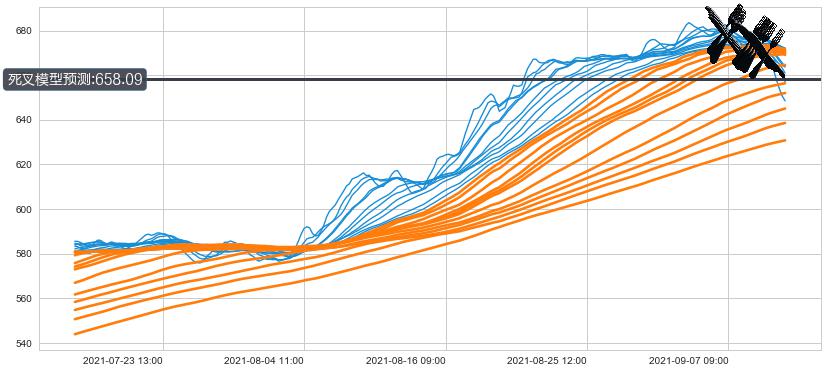 ➣ 70小时均线于(09-08 11:00: 672.62)形成【死叉】基于【死叉历史模型】预测死叉后最低波谷价格: 657.94, 死叉后最低价格646.10,已经下跌超出预测最低波谷价格, 预期反弹