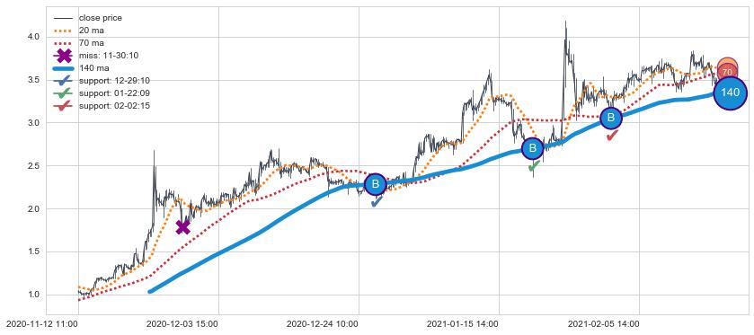 📝 多条均线形成死叉后走势最低价格达到: 4.42