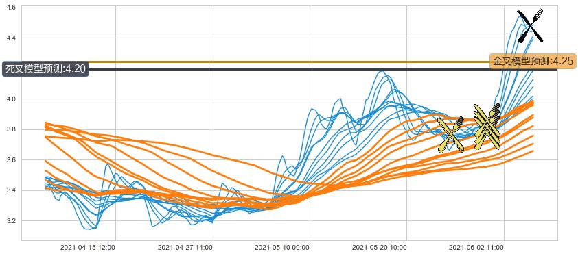 ➣ 34小时均线于(05-28 14:00: 3.772)形成【金叉】基于【金叉历史模型】预测金叉后最高波峰价格: 4.10, 金叉后最高价格4.59,已经上涨超出预测最高波峰价格, 预期回调
