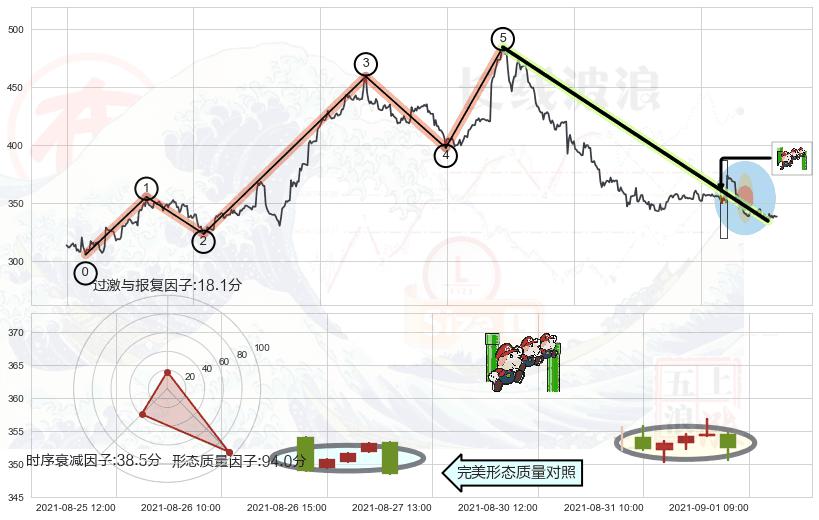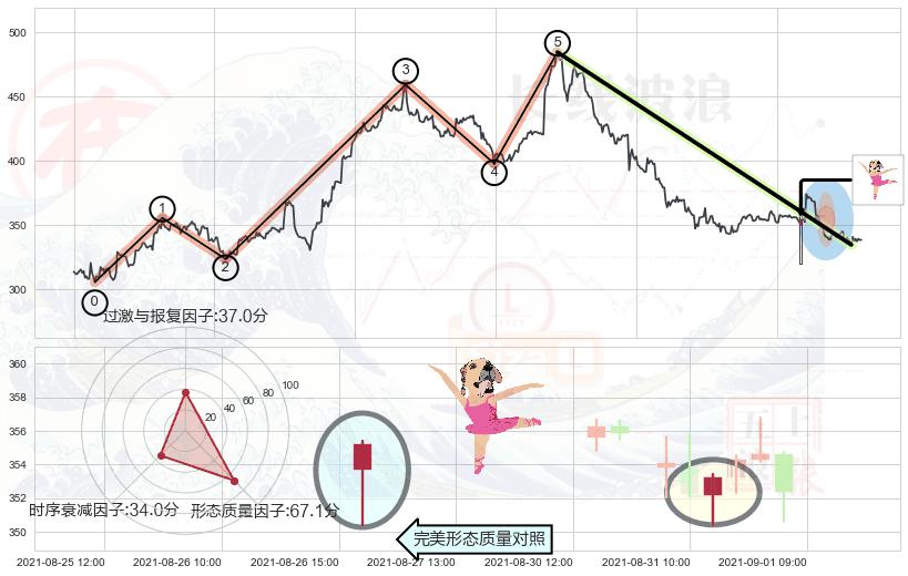 ➢ 🕰 价格走势在2021-08-31 10:00:00至2021-08-31 14:00:00期间形成下降三部曲(降势三鹤),残存影响值:-3.33