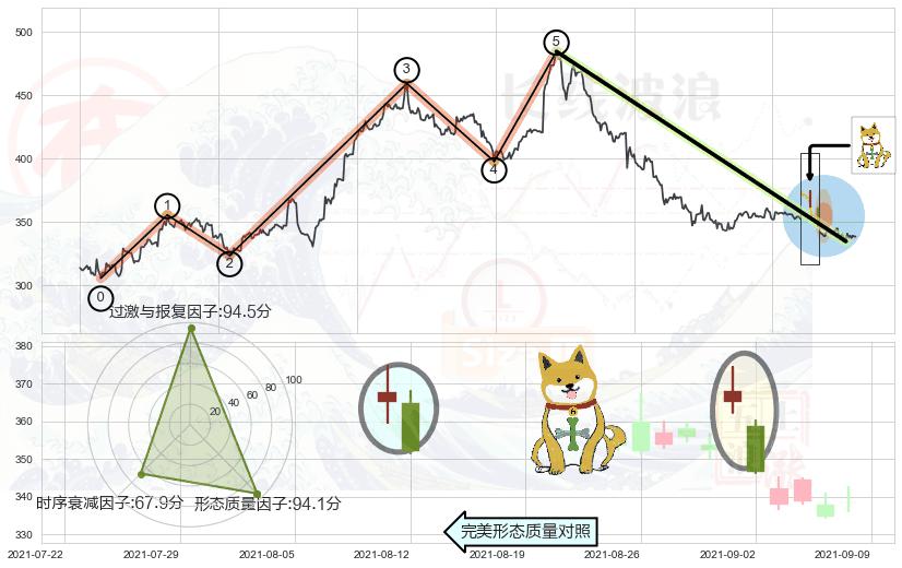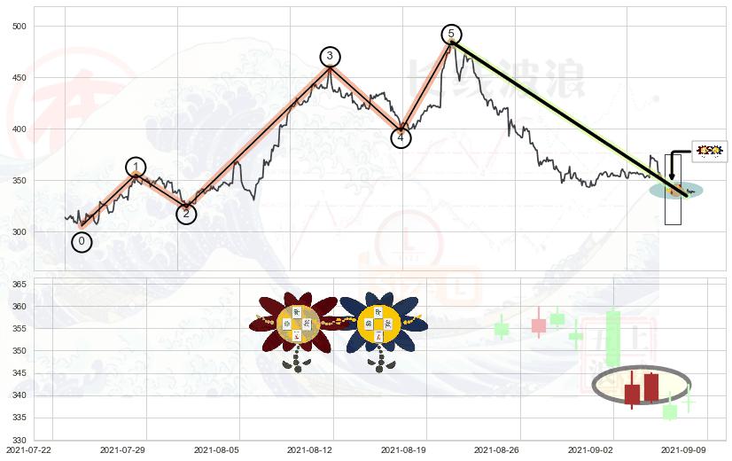 从2021-07-26 11:00至2021-09-09 15:00,共包含217个小时,阶段股价下跌-34.45%,阶段股价变动位移路程比: 1 : 4