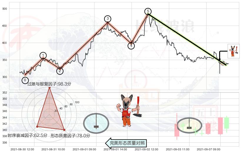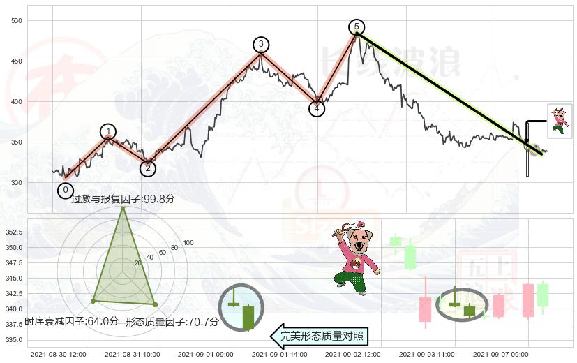 ➢ 🕰 价格走势在2021-09-08 12:00:00至2021-09-08 14:00:00期间形成三只乌鸦,残存影响值:-3.43