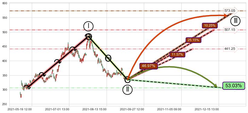 ➢ 循环浪继续向上【最低】位置(11-17:14, 441.25),匹配聚类样本比例24.64%, 可能性概率11.57%