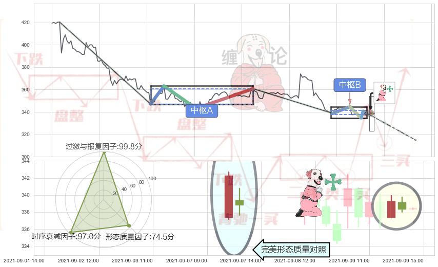 从2021-09-01 09:00至2021-09-09 15:00,共包含40个小时,阶段股价下跌-9.81%,阶段股价变动位移路程比: 1 : 2