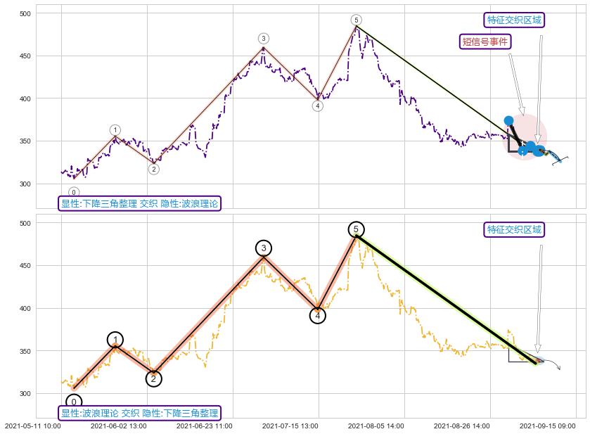➢ 下降三角整理属【短级别信号事件】缠论中枢点属【长级别信号事件】长短周期组合信号事件, 短长事件长度比22.75%