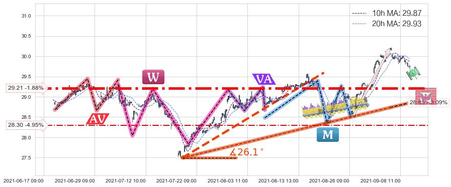 ♘ 支撑价格位29.21,可信任强度88.23%,距离最后交易2021-09-09 14:00形成的收盘价格29.77相差 -1.88%
