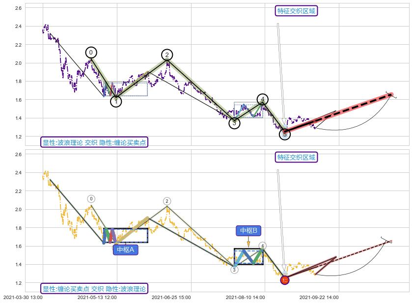 ➣ 缠论买卖点:下降缠中枢AB形成后猜想拐点1买已到达,猜想后续持续拉升(均值回复)
