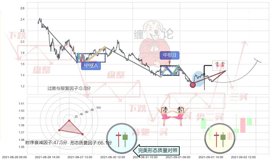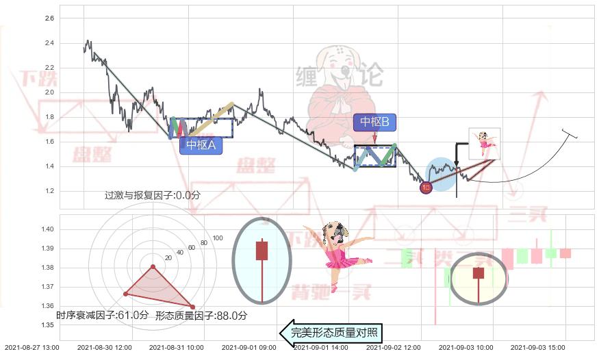 ➢ 🕰 价格走势在2021-09-01 13:00:00至2021-09-01 14:00:00期间形成双针探底,残存影响值:2.08